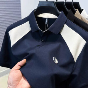 High end cotton color blocked lapel short sleeve T-shirt (Pack of 4)