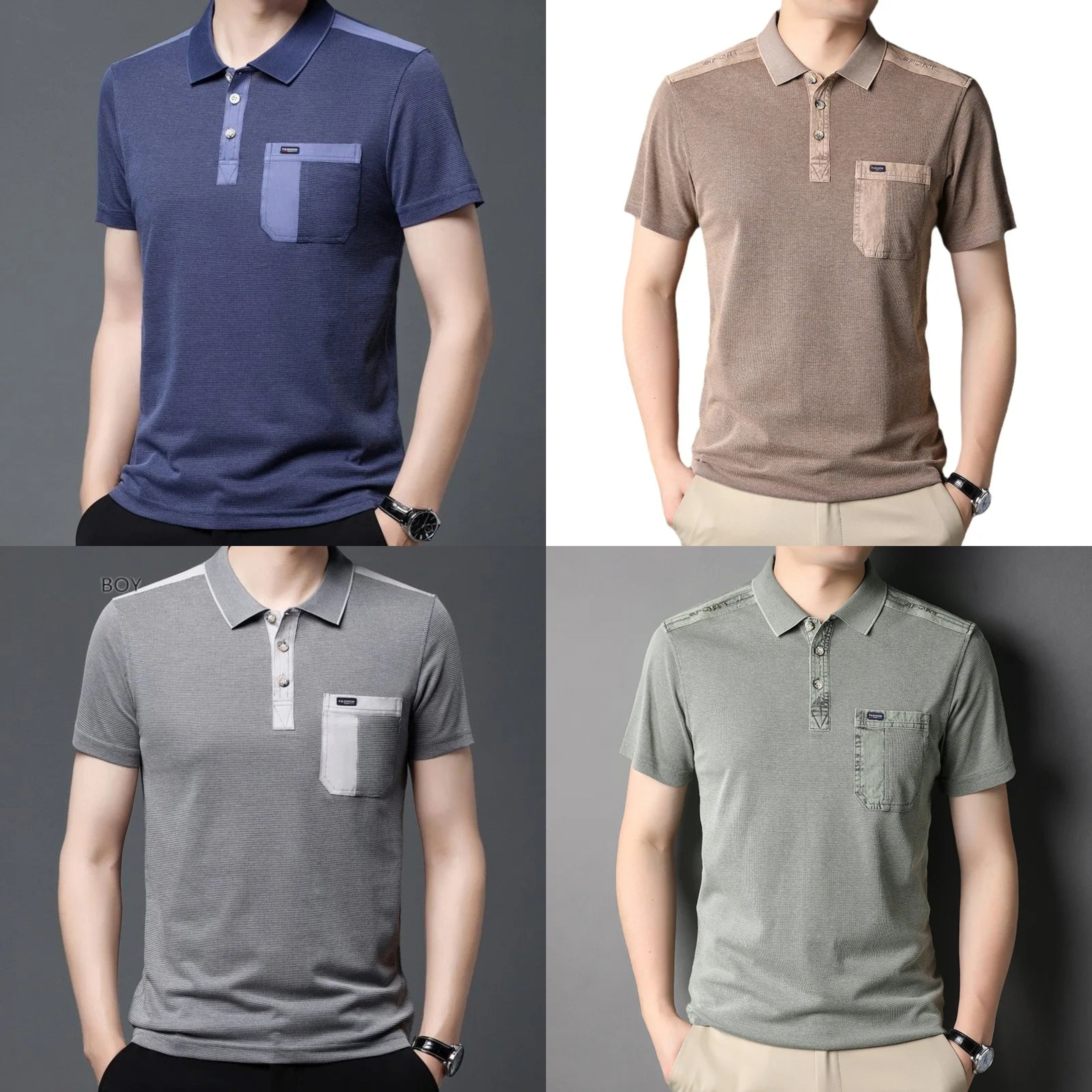 New Men’s Summer Solid Color Short Sleeved POLO T-shirt (Pack of 4)