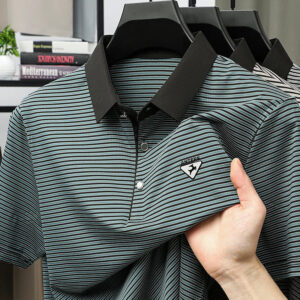 Summer Fashion Men’s Striped Printed Lapel Polo T-Shirt